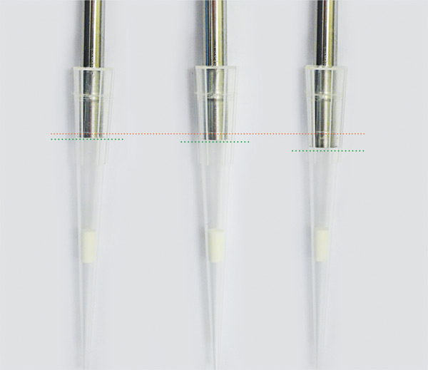 移液器調(diào)節(jié)到一定的氣墊體積的**和靜水壓力。比較不同制造商的提示,很容易看出,尺寸和形狀的差異。此外,**到**的質(zhì)量也是一個(gè)影響因素。測(cè)試產(chǎn)品(精確尺寸?。┻m合不同的位置,其中三個(gè)隨機(jī)選擇的提示來自一盒其他制造商提示。