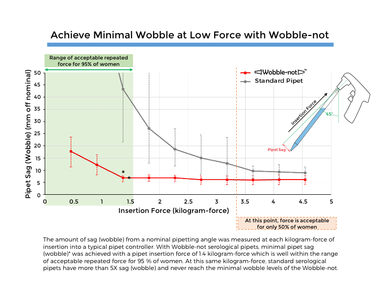 當(dāng)我們要求人們將傳統(tǒng)的血清移液管與Wobble-not移液管進(jìn)行比較時(shí),他們意識(shí)到從控制器插入和移除舊移液管需要多大的力。